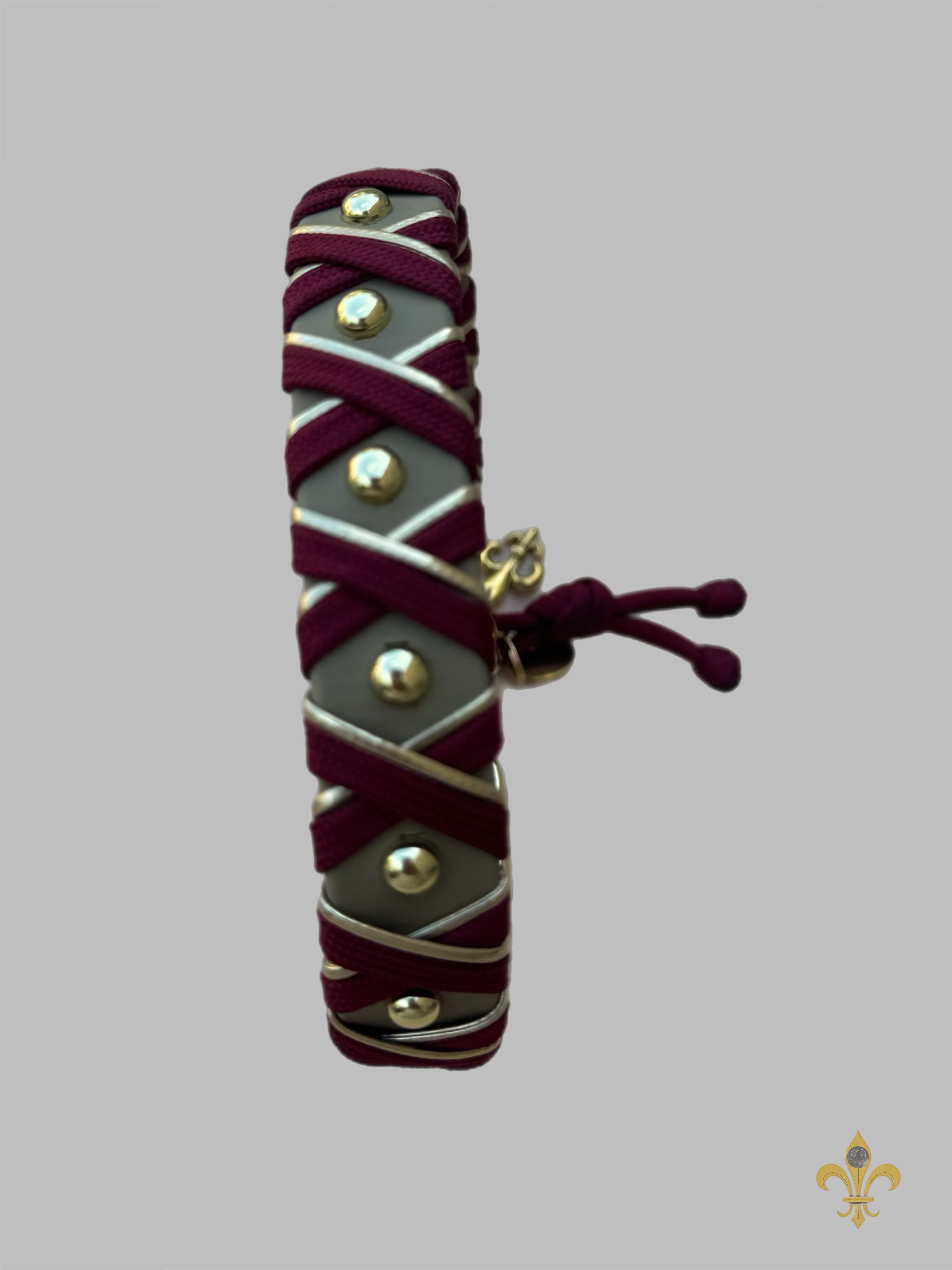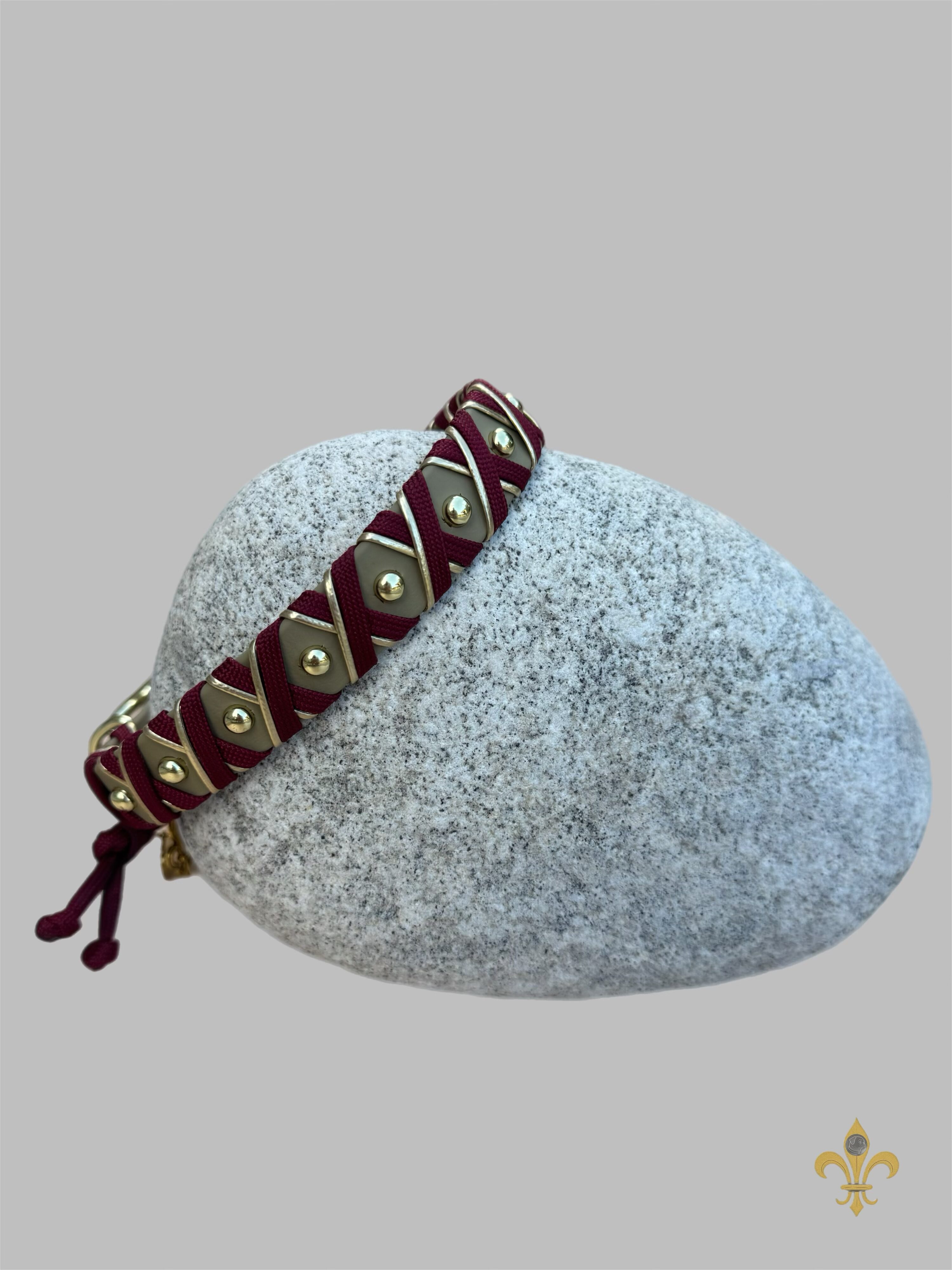 Mit zwei Strängen umflochten und kleine Nieten 0,6 cm.