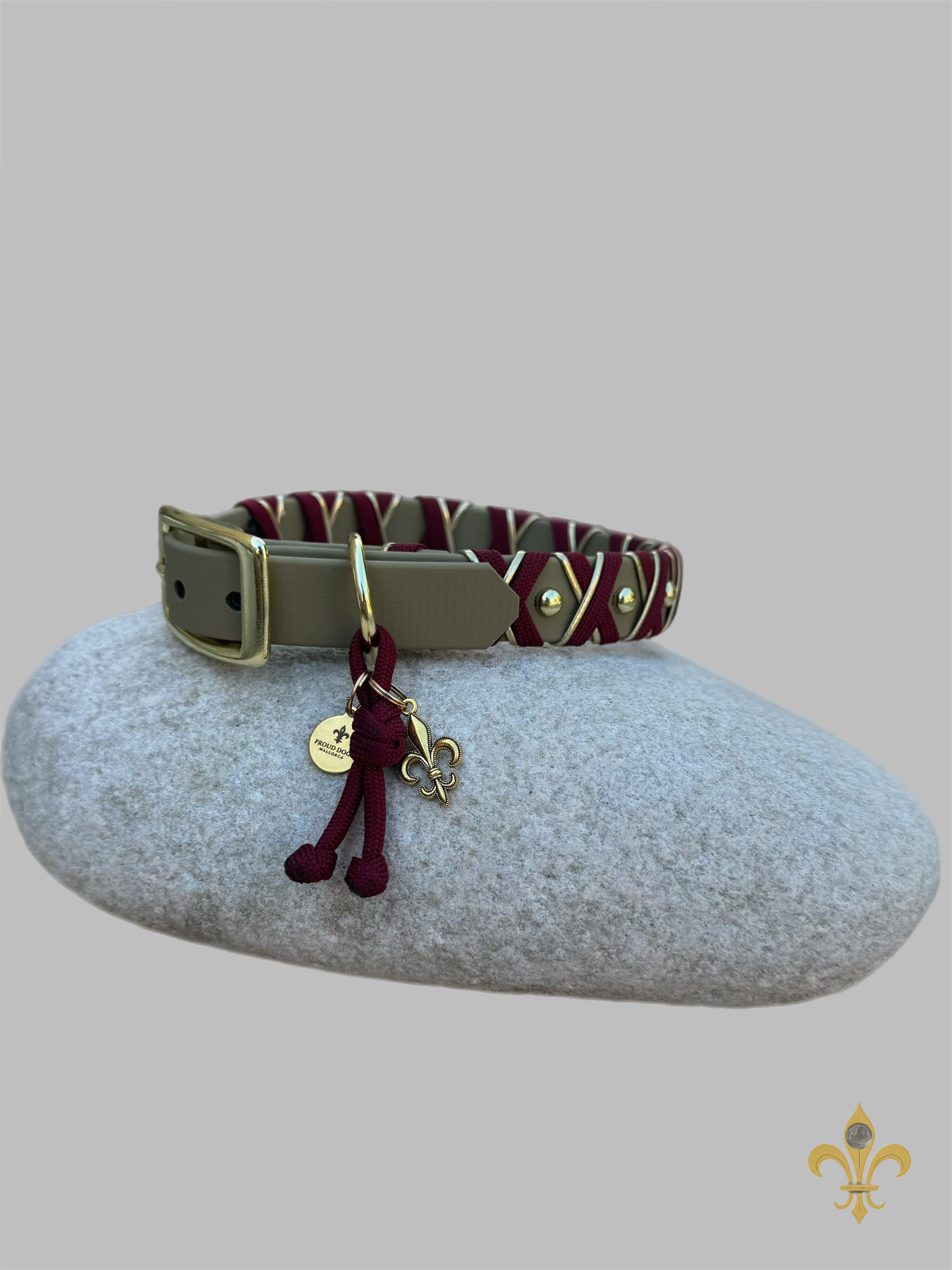 Dieses hochwertige Hundehalsband wird aus original Biothane® in der auffälligen Farbe Bordeaux gefertigt und mit robustem Paracord stilvoll umflochten. Die angegebene Breite bezieht sich auf das Biothane-Material – durch die Umflechtung variiert die tatsächliche Gesamtbreite je nach Flechtstil: