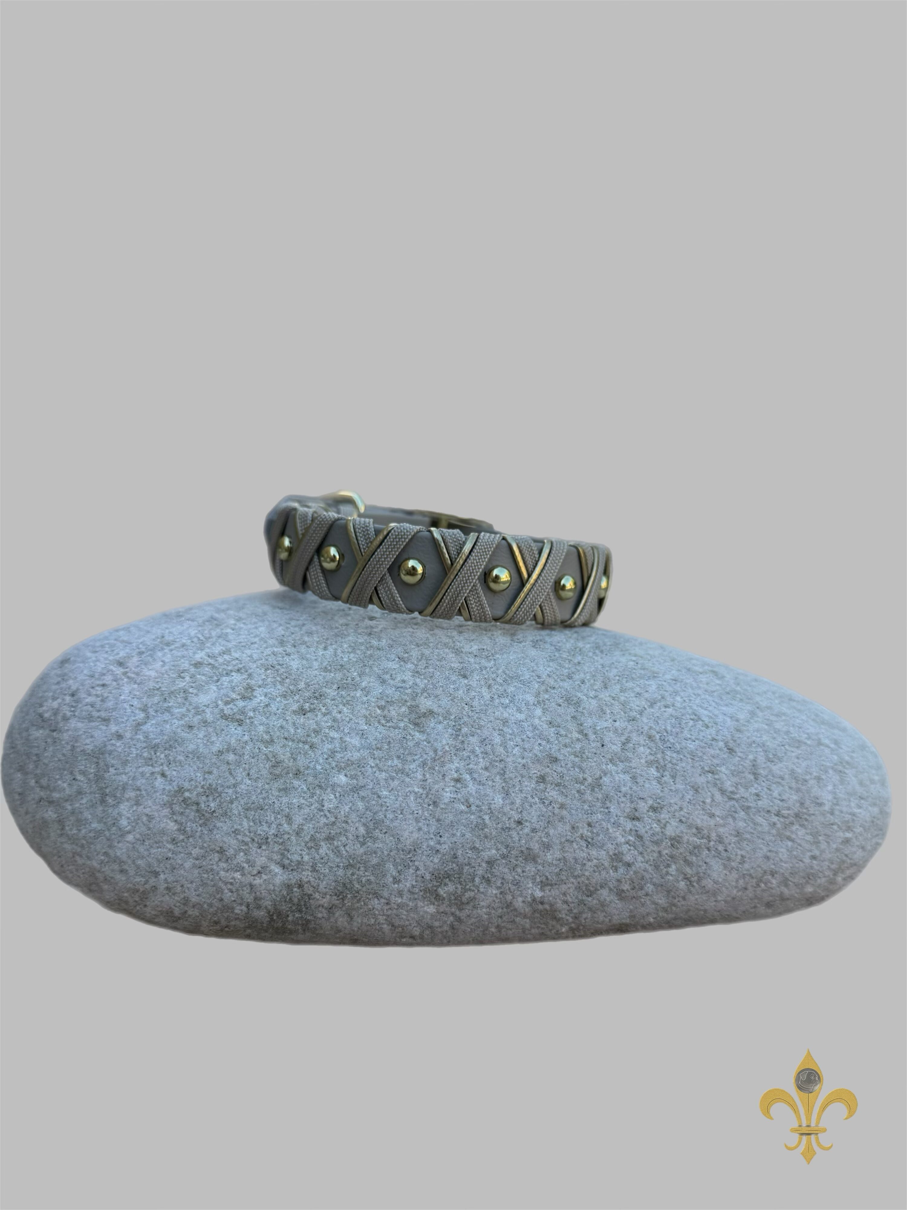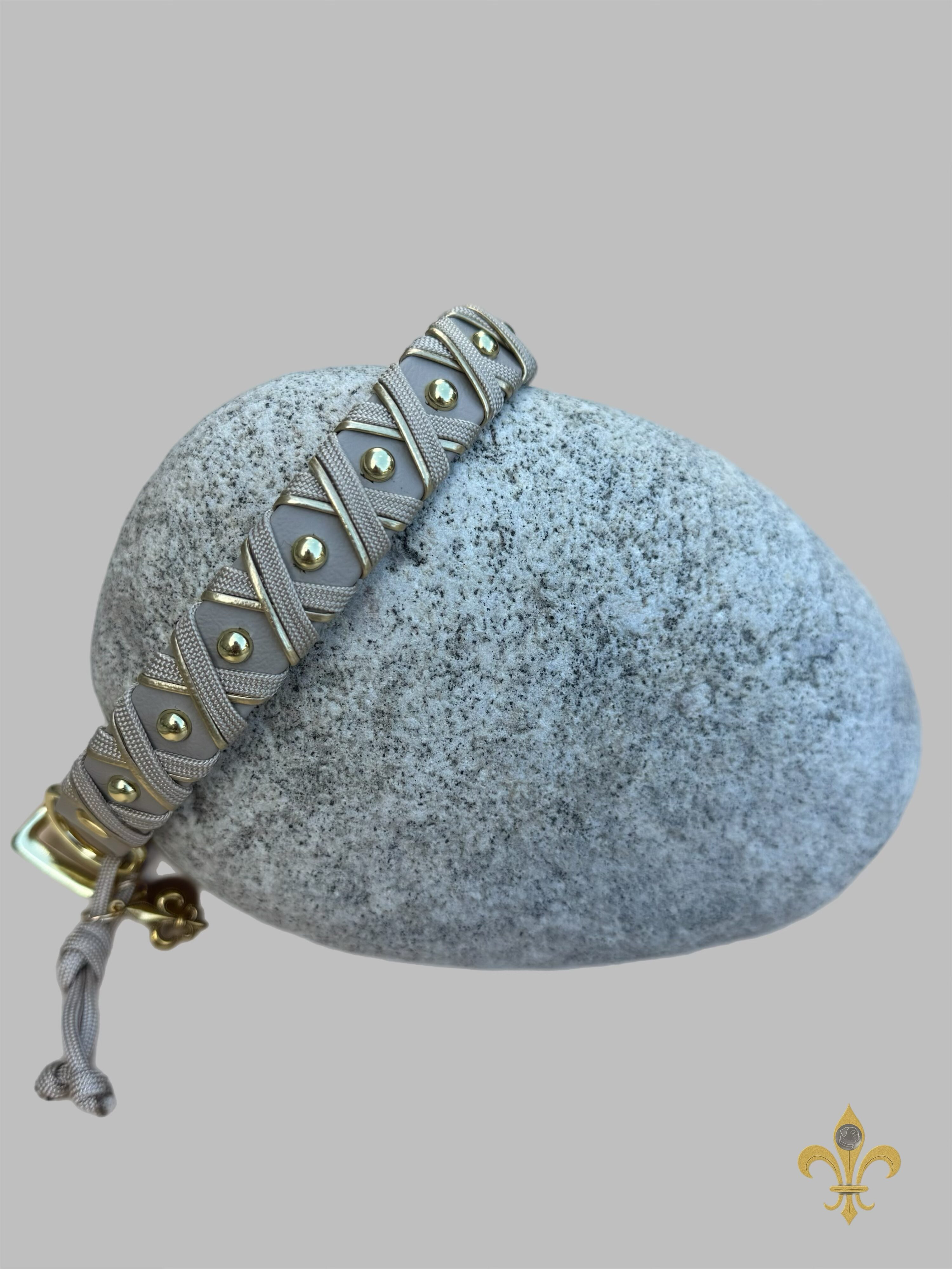 Mit zwei Strängen umflochten und kleine Nieten 0,6 cm.