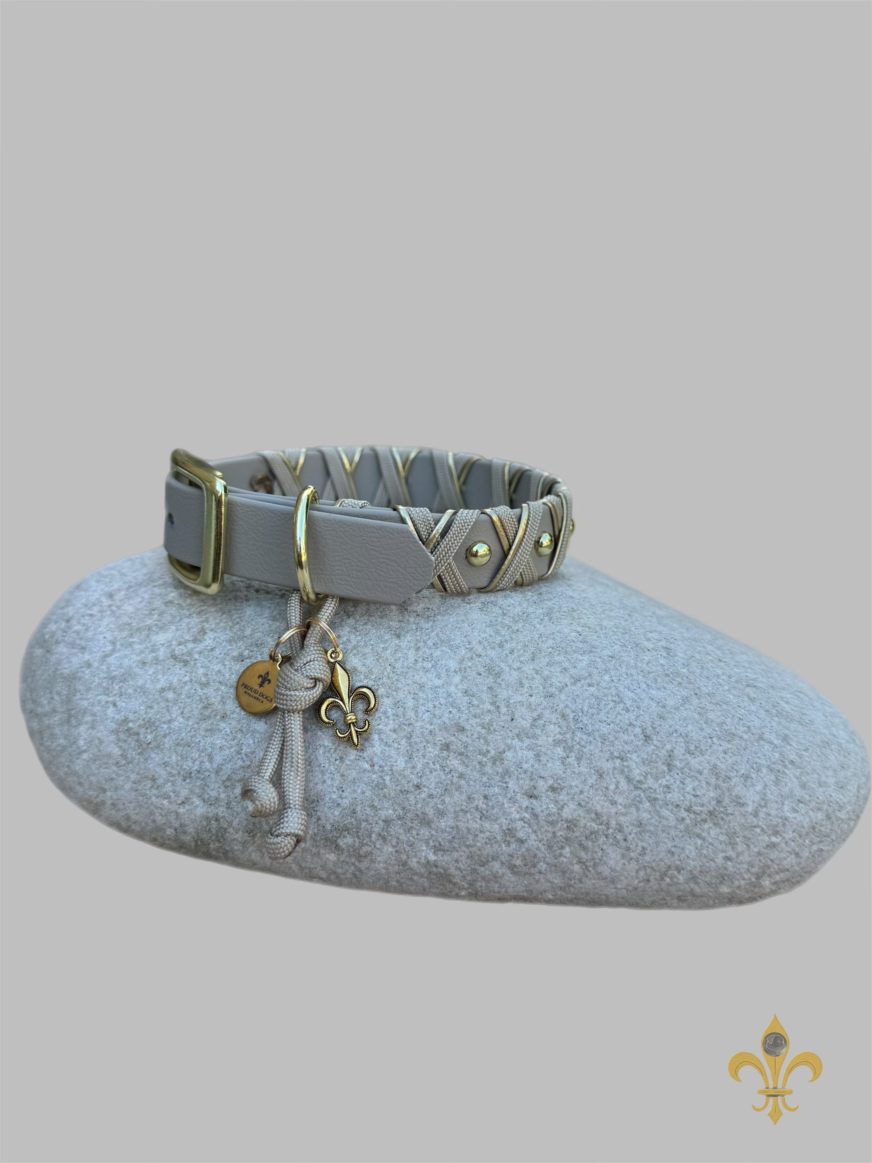 Dieses hochwertige Hundehalsband wird aus original Biothane® in der auffälligen Farbe Champagner gefertigt und mit robustem Paracord stilvoll umflochten. Die angegebene Breite bezieht sich auf das Biothane-Material – durch die Umflechtung variiert die tatsächliche Gesamtbreite je nach Flechtstil:
