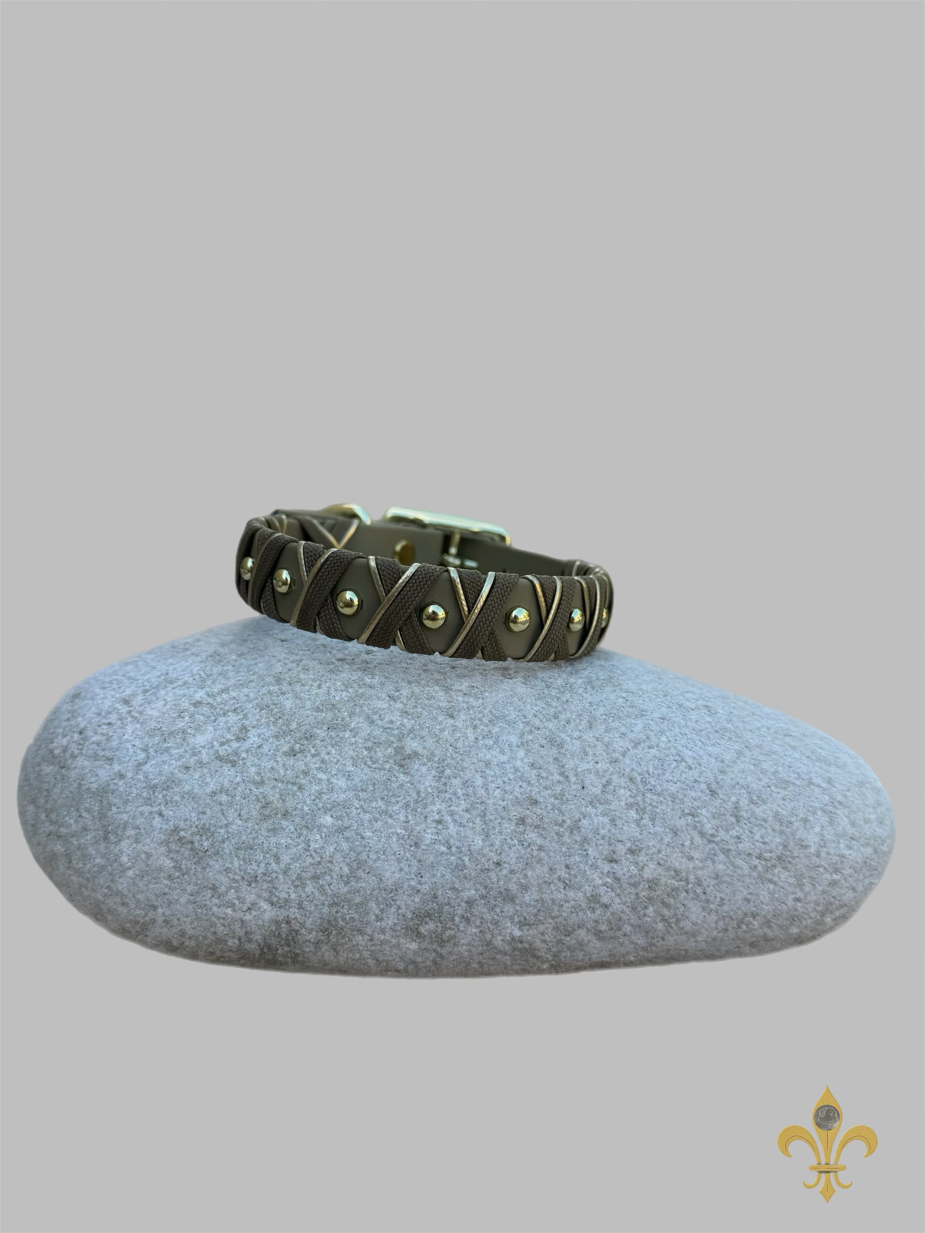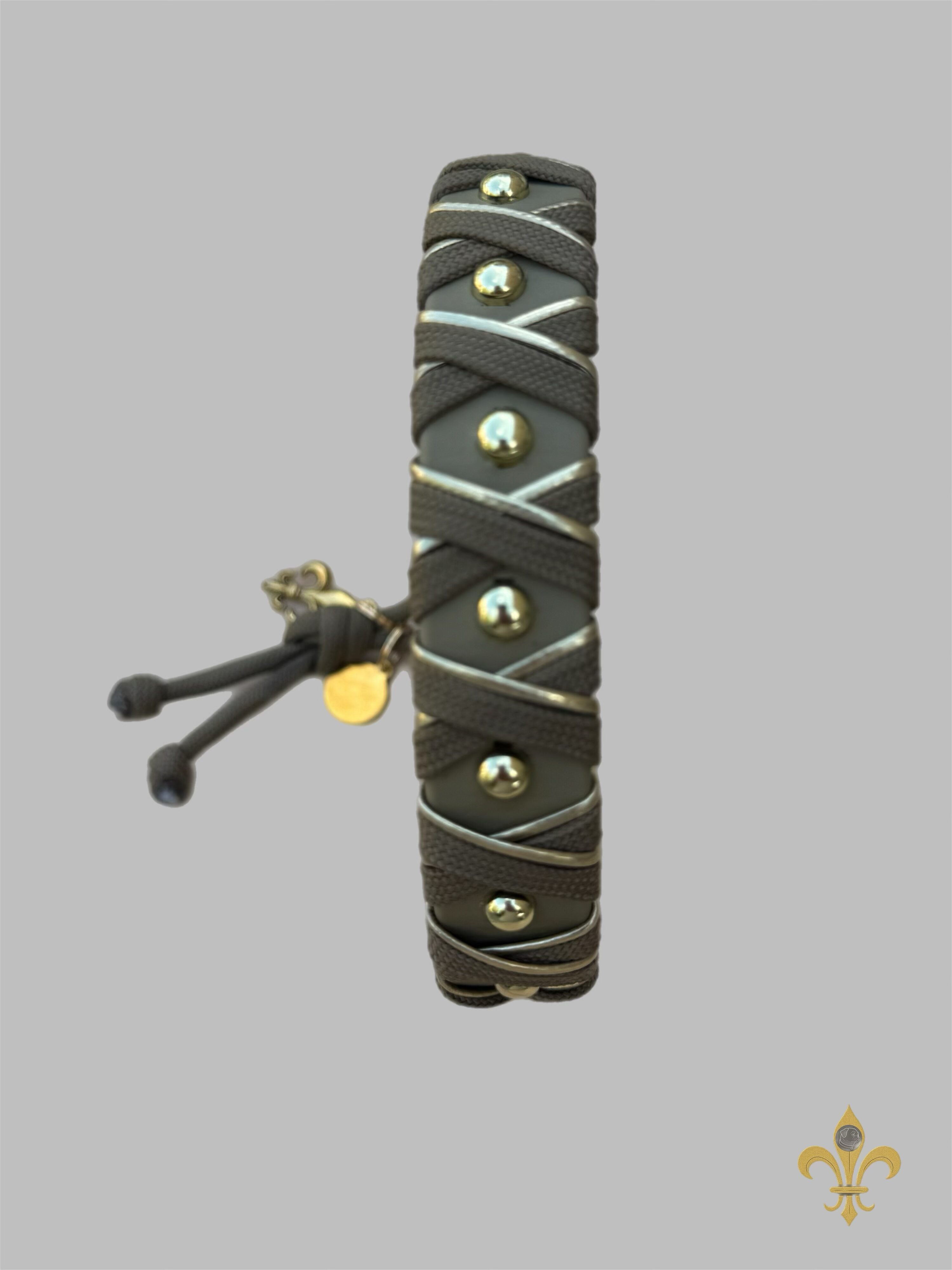 Mit zwei Strängen umflochten und kleine Nieten 0,6 cm.