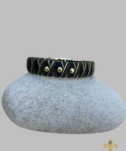 Mit zwei Strängen umflochten und drei kleine Nieten 0,6 cm in der Mitte.