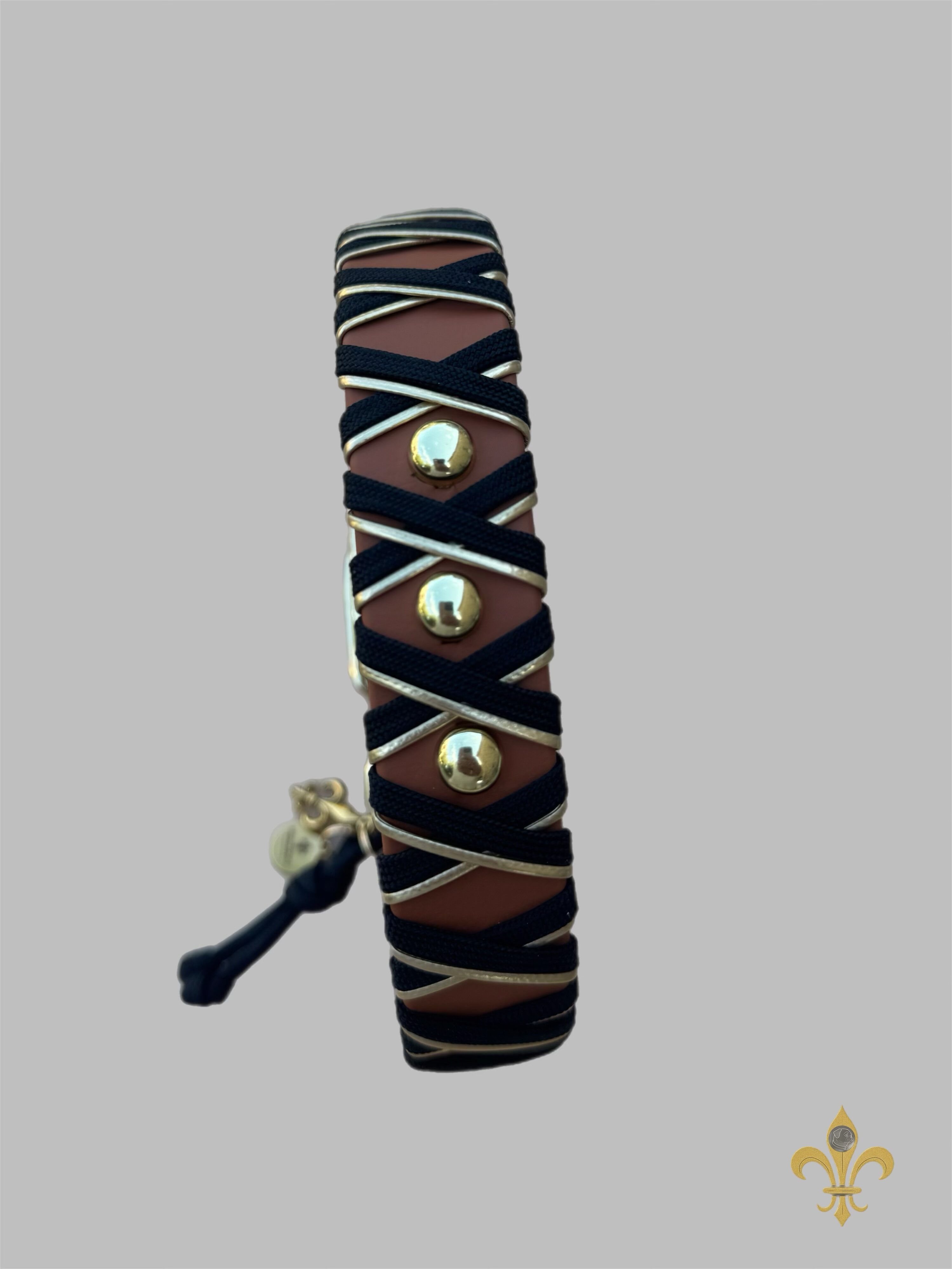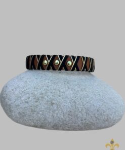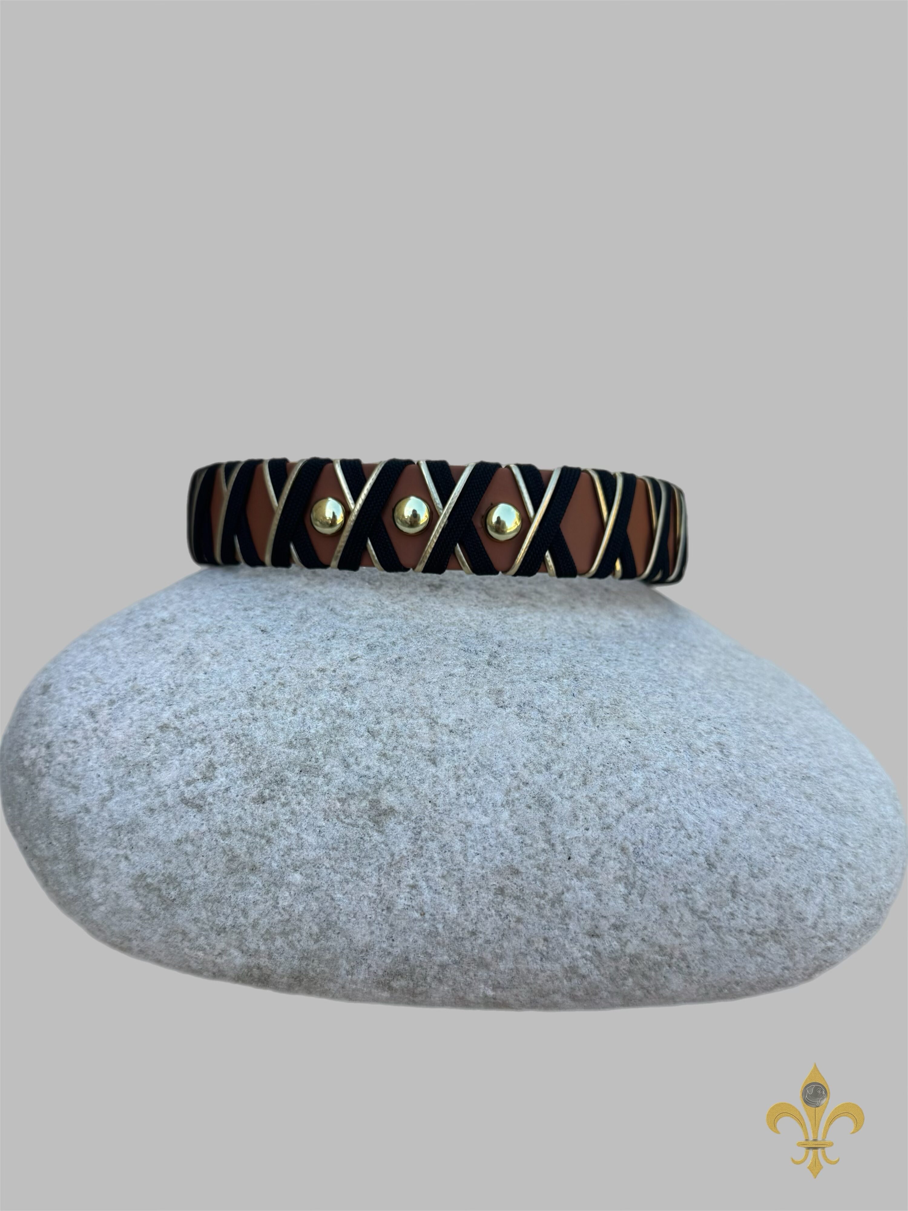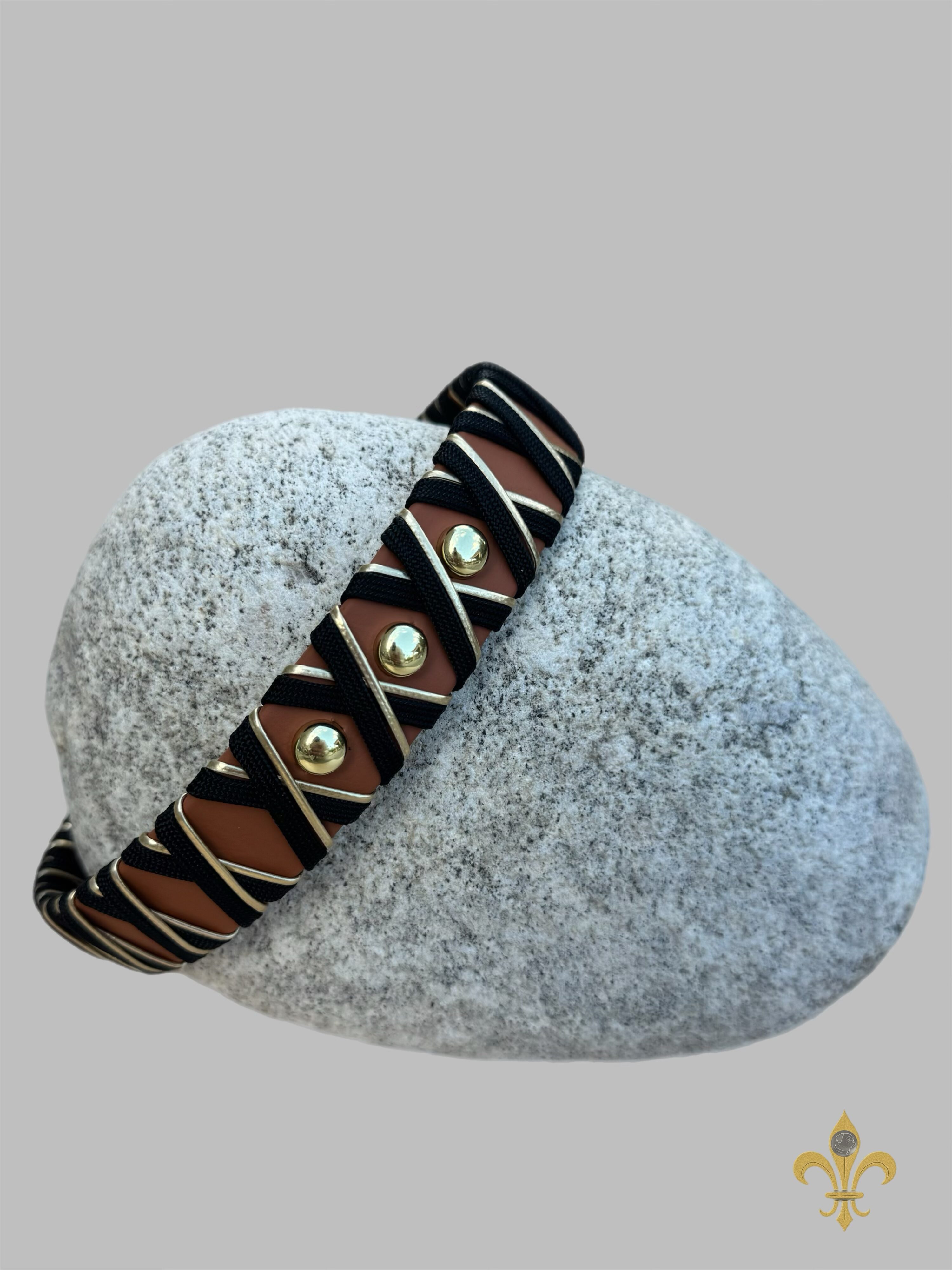 Mit zwei Strängen umflochten und drei kleine Nieten 0,6 cm in der Mitte.