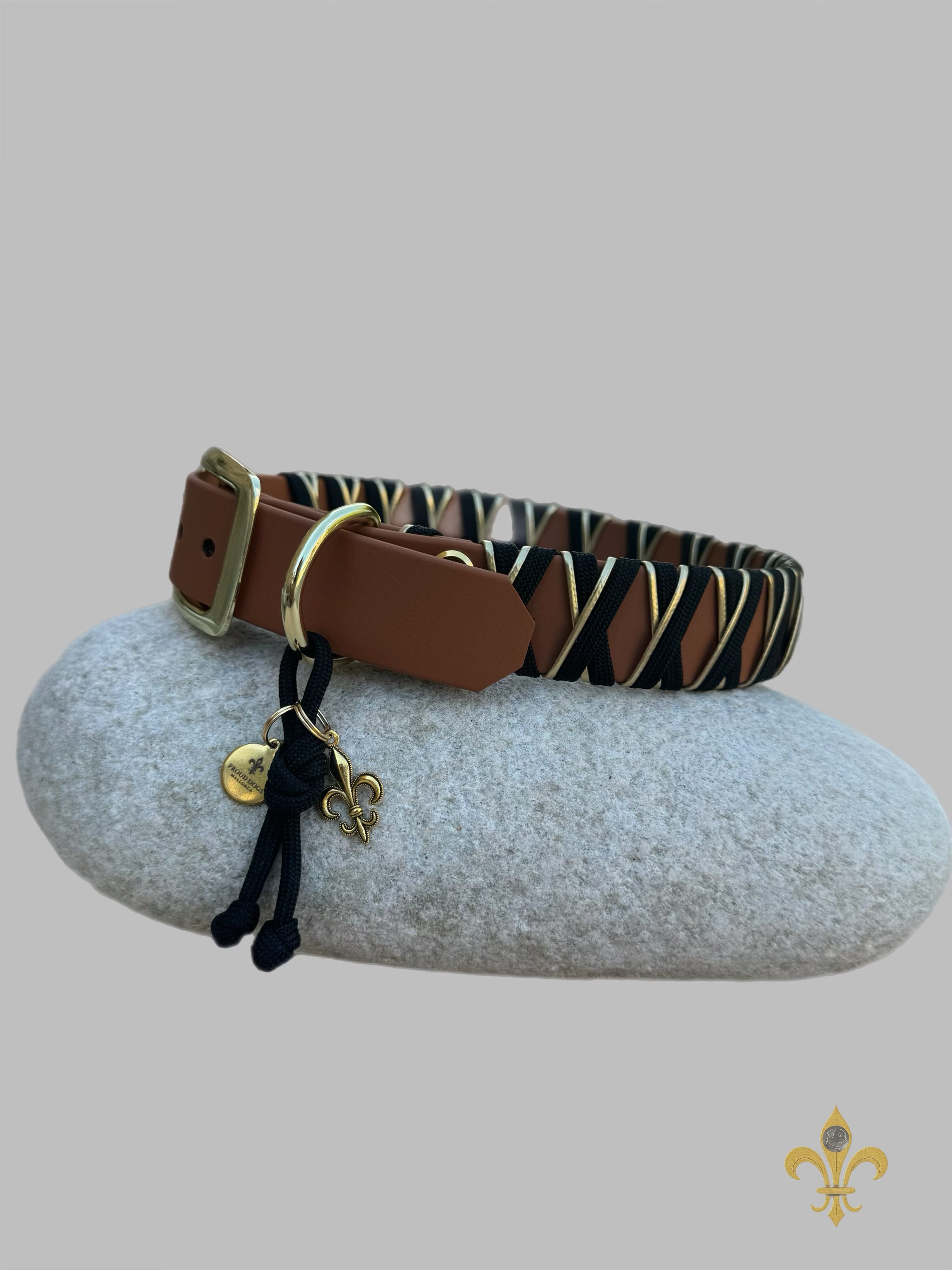 Dieses hochwertige Hundehalsband wird aus original Biothane® in der Farbe Schwarz gefertigt und mit robustem Paracord stilvoll umflochten. Die angegebene Breite bezieht sich auf das Biothane-Material – durch die Umflechtung variiert die tatsächliche Gesamtbreite je nach Flechtstil: