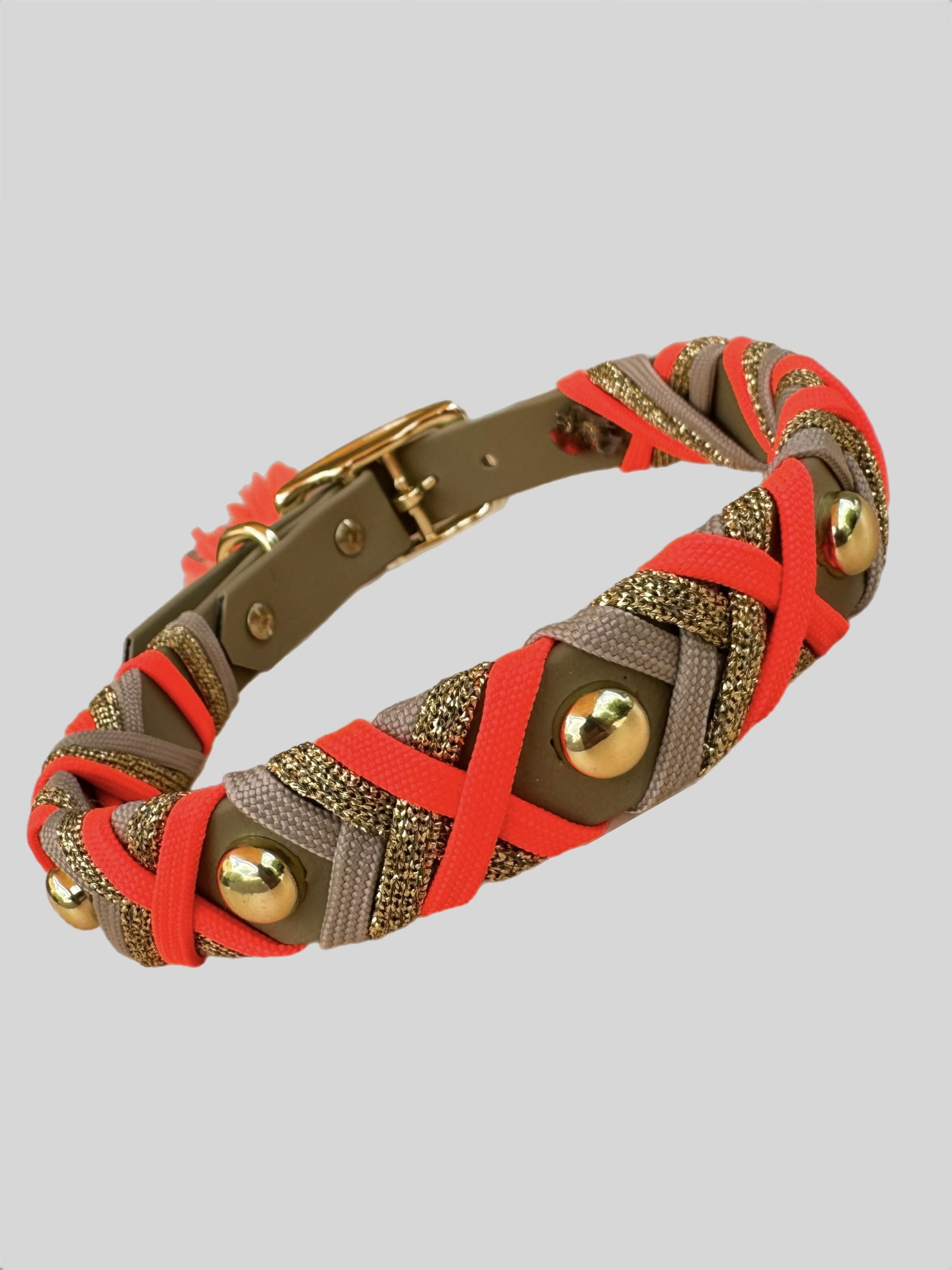 Halsband Crossline Neon Koralle / Gold / Taupe