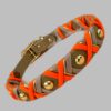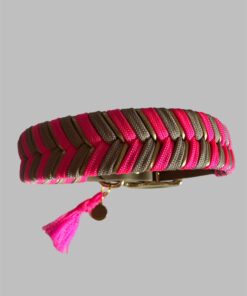Halsband V – Line Neon Pink / Taupe / Goldschnur