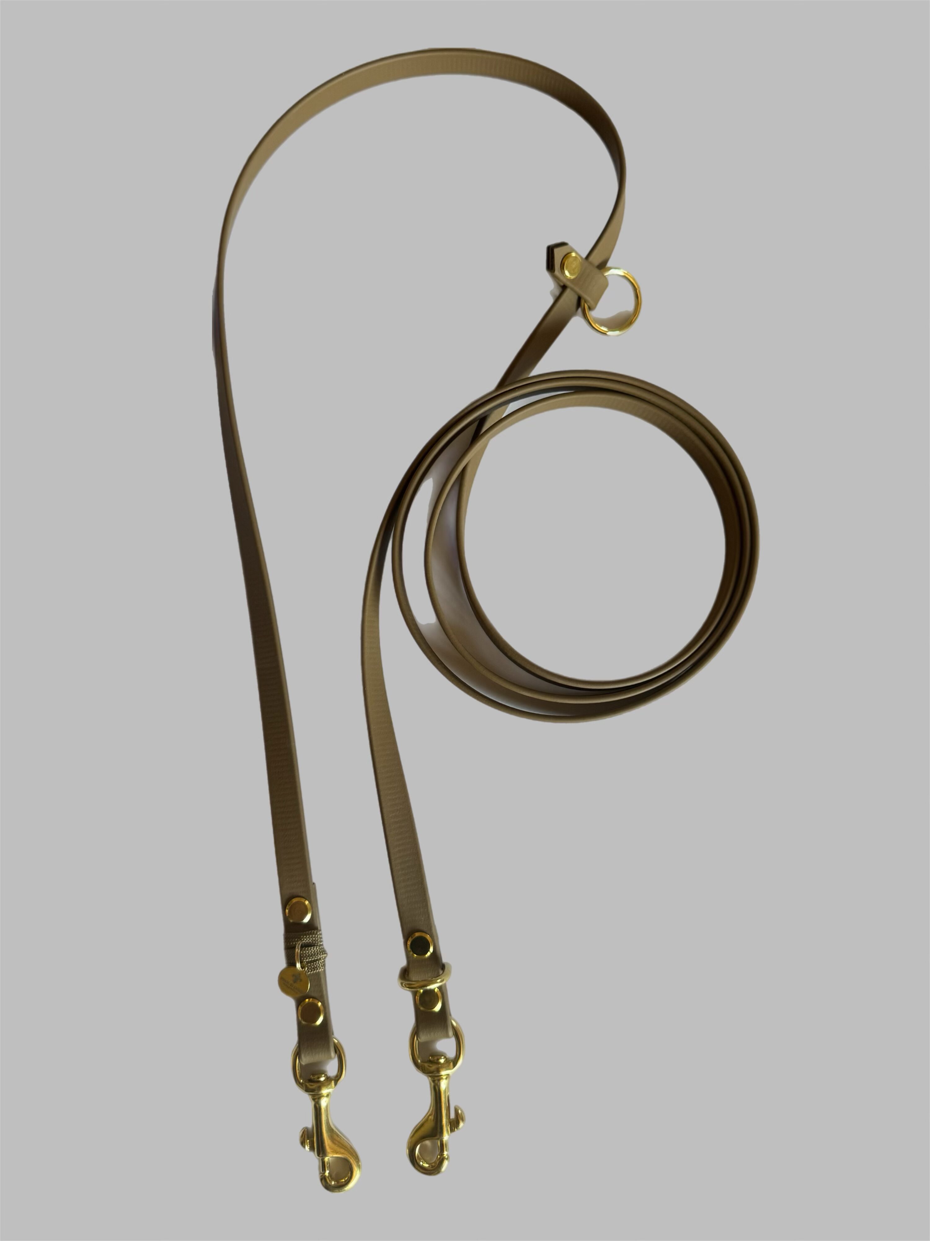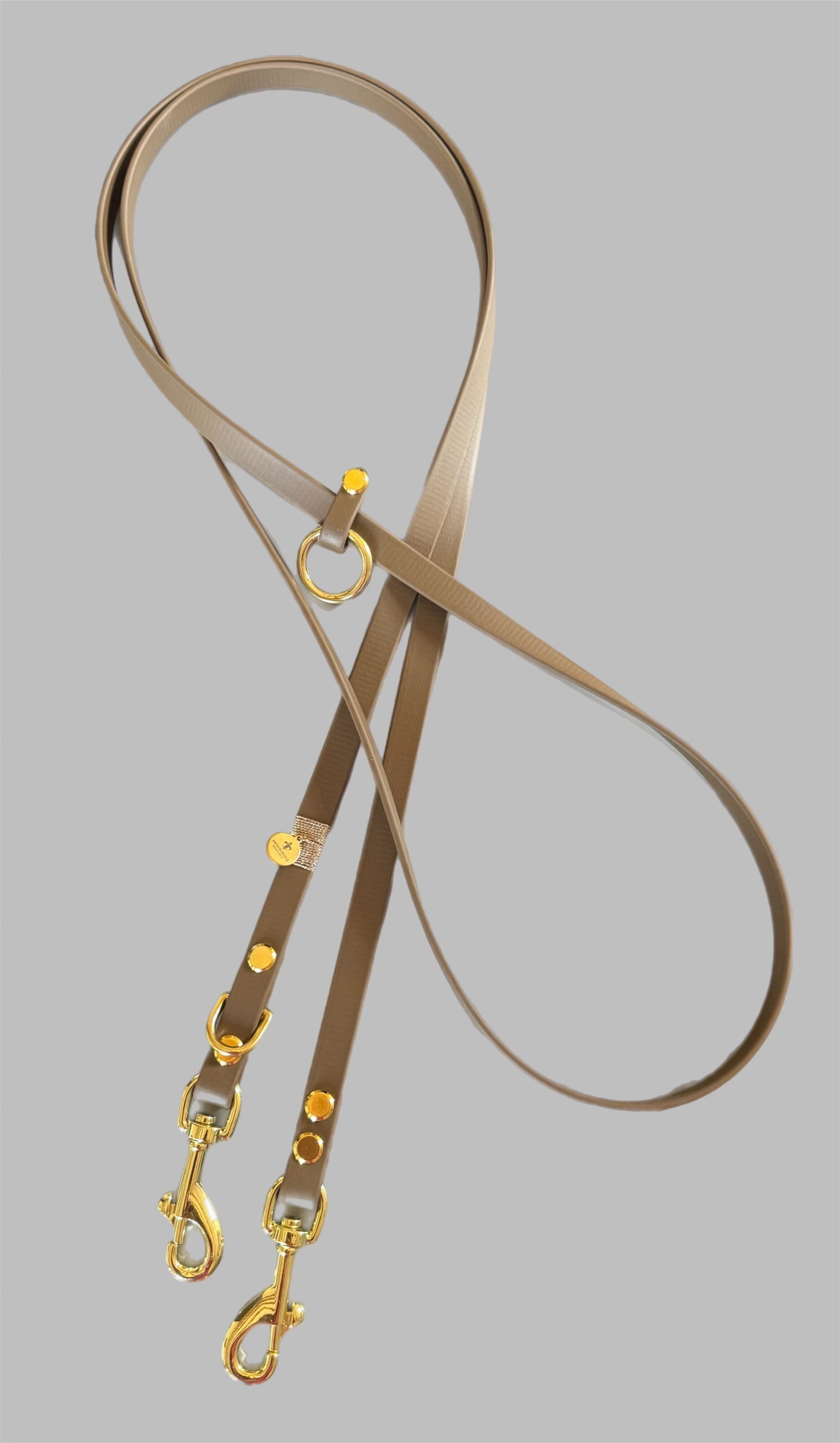 Gefertigt aus hochwertiger Biothane, ist sie nicht nur pflegeleicht und wetterfest, sondern überzeugt durch ihre geschmeidige Haptik und ihr minimalistisches Design mit edlen Akzenten in Gold.